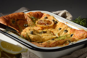 Smoked Salmon, Capers, and Goat Cheese Strata